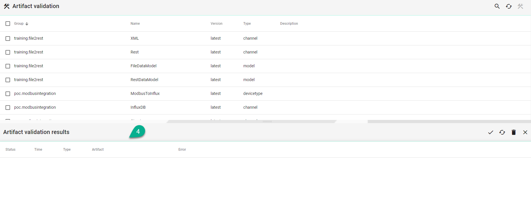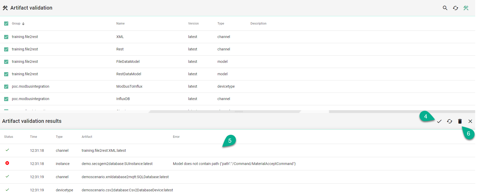SMARTUNIFIER provides the possibility to validate configuration components (artifacts) that are created. This is especially important when restoring a backup from an older version of a SMARTUNIFIER Manager installation.