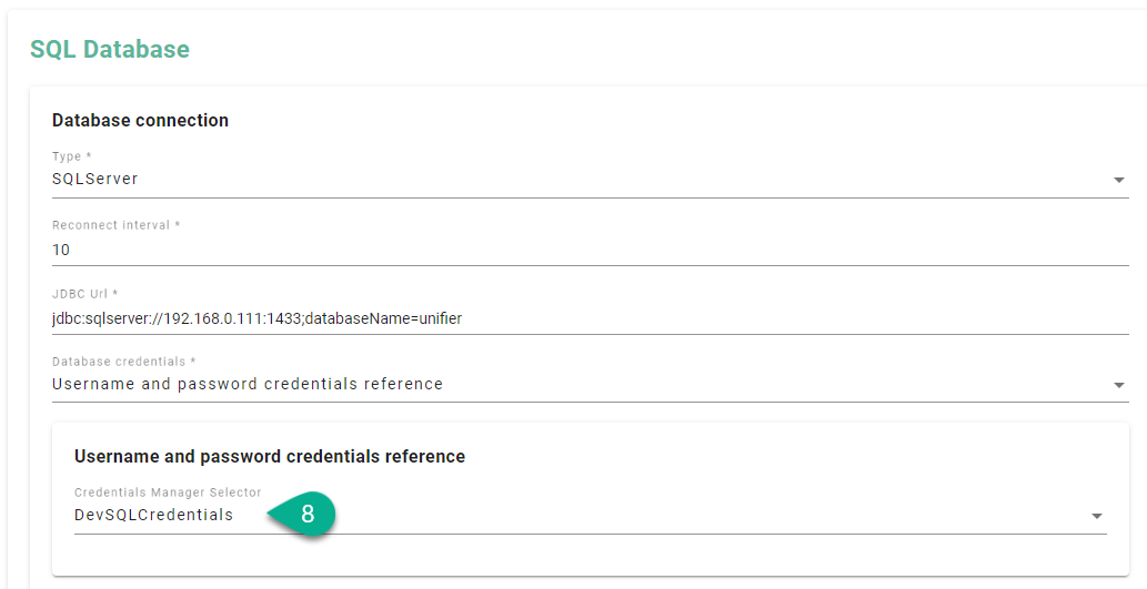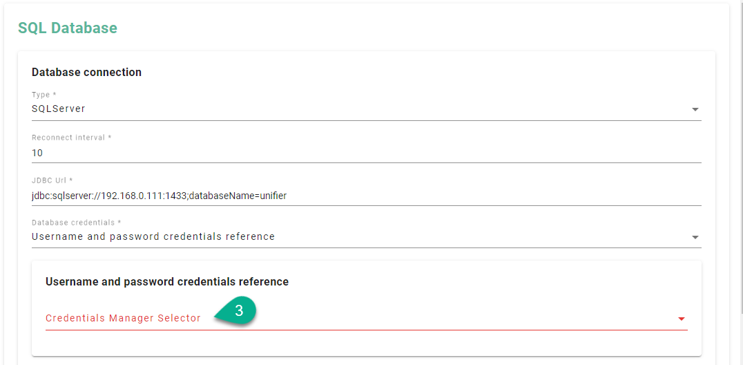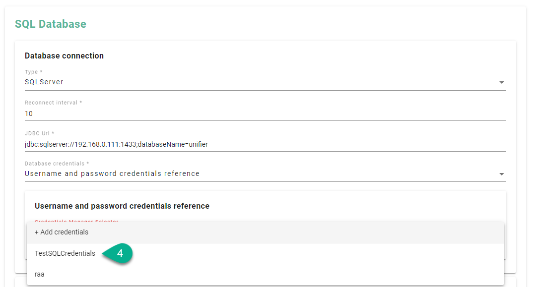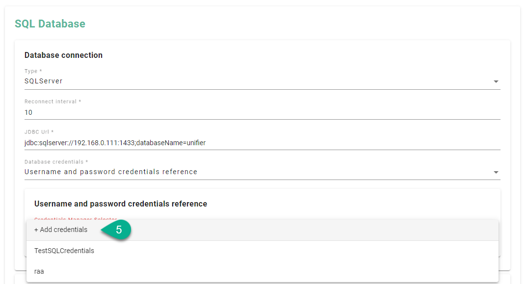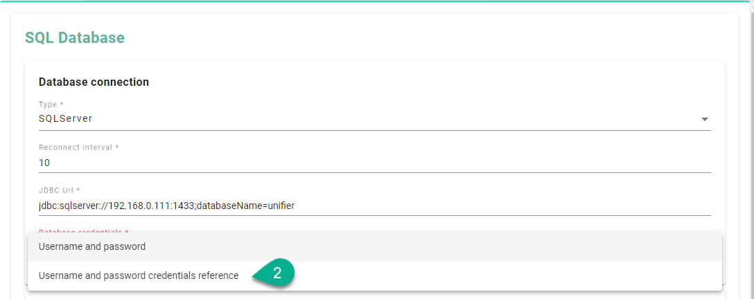 Click on the Database credentials field (1).