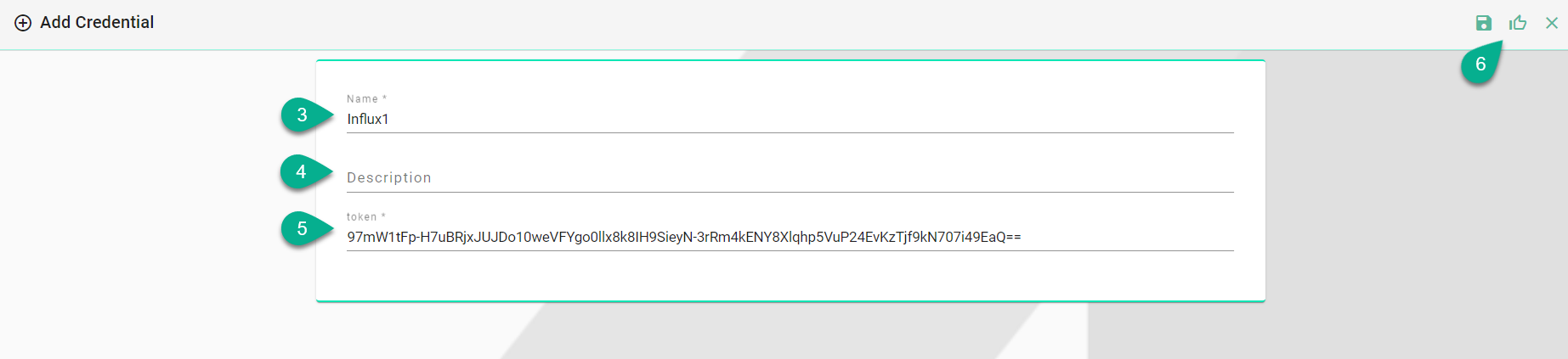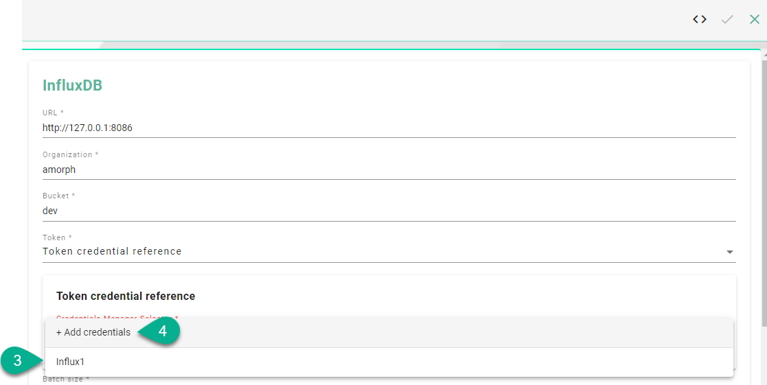 If the token is not saved in the Credentials Manager, click on the Add credentials option (4), input the token details and save it.
