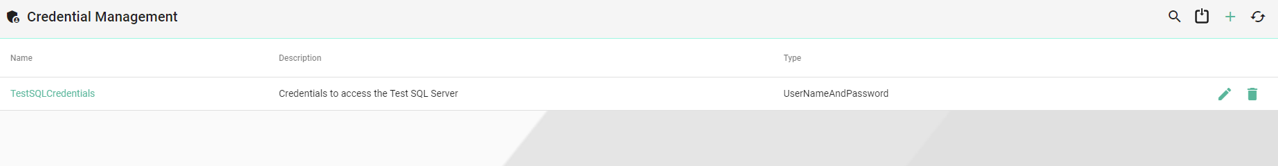 Within the Credential Manager the user can store and manage the credentials needed for the Communication Channel configuration (e.g., password for certificates, username and password for SQL Server).