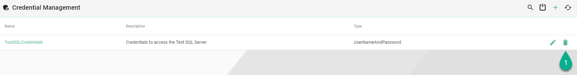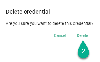 To delete credentials, select the Delete button (1).