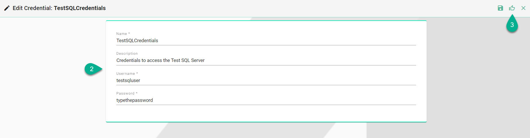 Type a name for Credentials (3).