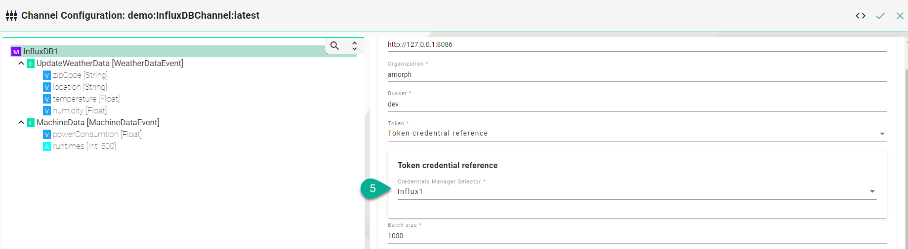 Example of InfluxDB V2 Communication Channel configuration: