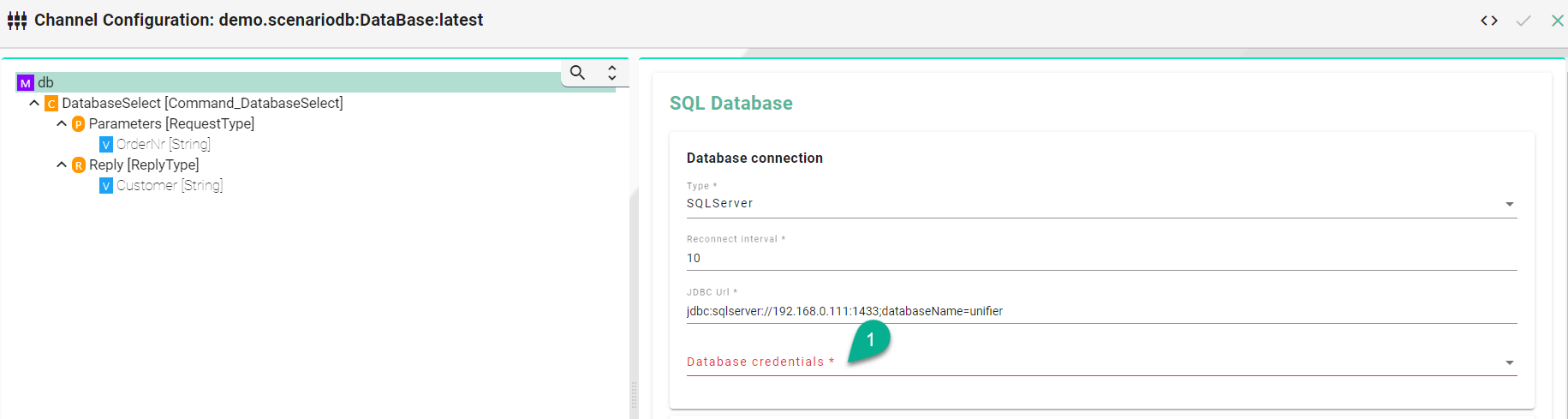 Example of SQL Database Communication Channel configuration: