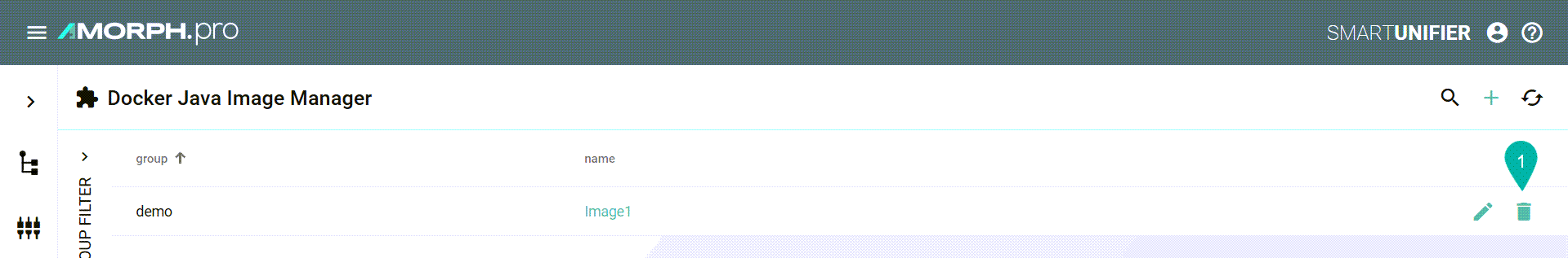 To delete a Docker Java image, select the Delete button (1).