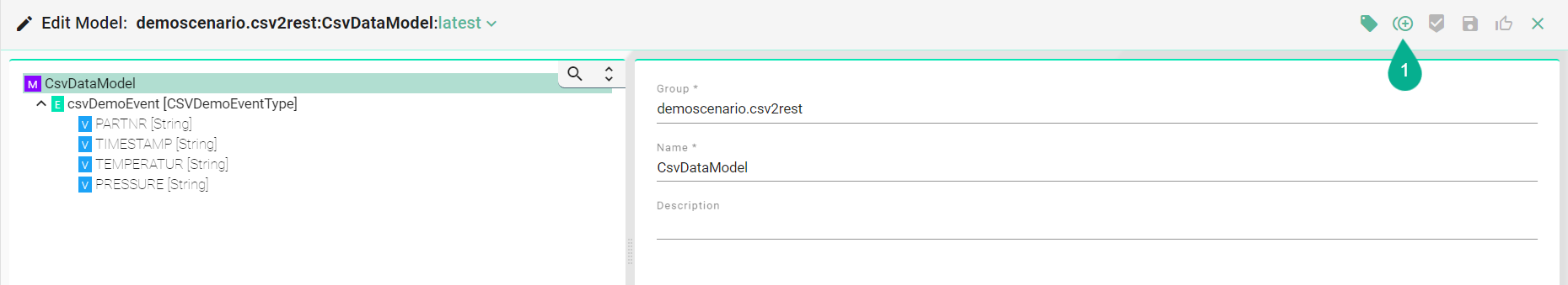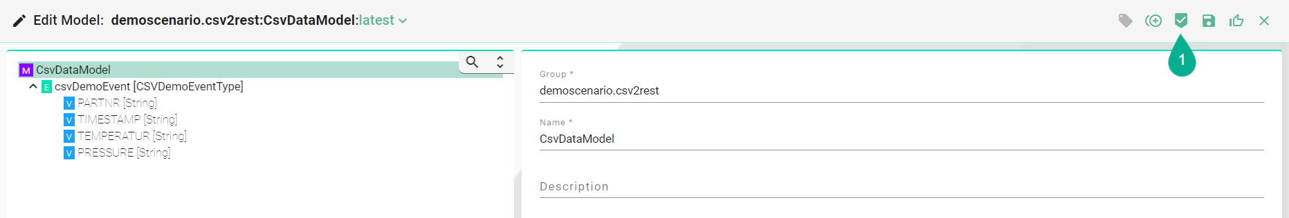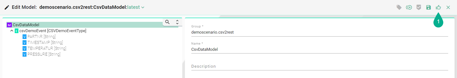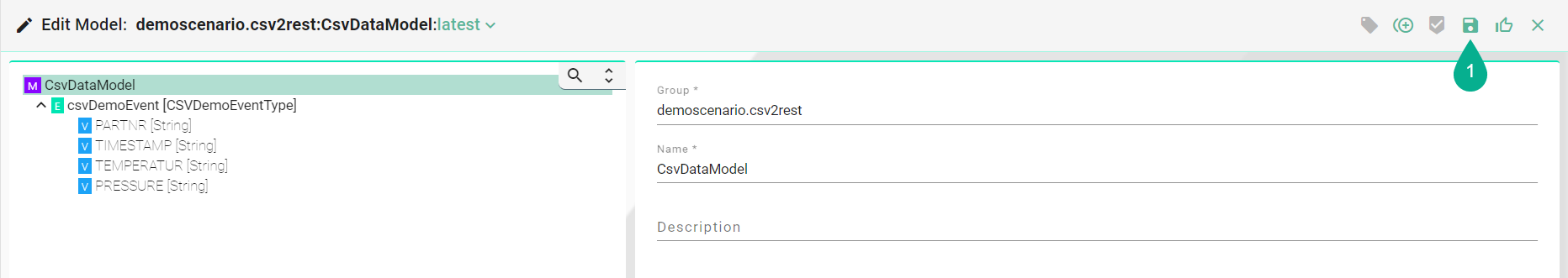 In Edit Mode, changes can be saved by clicking the Save button (1) after the input data has been applied.