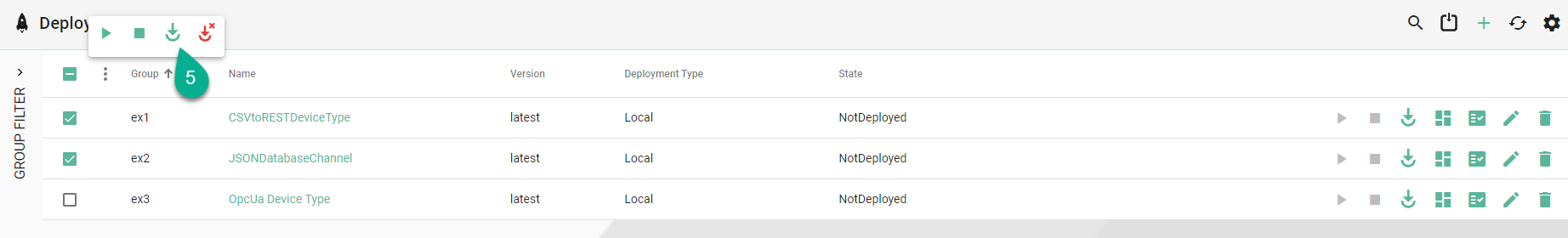 Choose a bulk operation; here, the selected instances should be deployed (5).