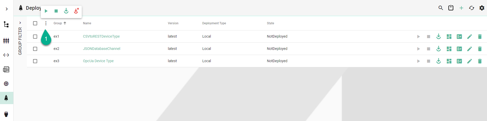 To begin, tick the boxes for specific Deployment Instances (2) or the box to select all (3).Then click on the ellipsis menu button (4).