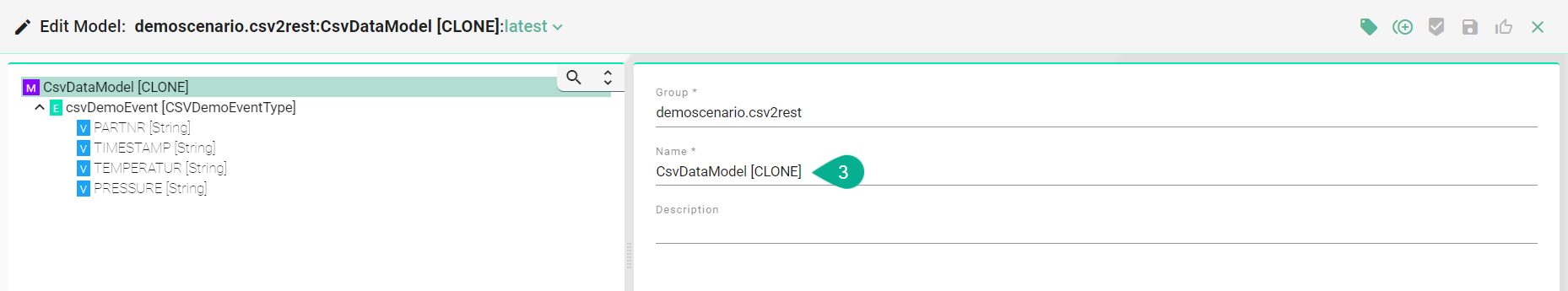 The cloned component is then visible in edit mode, requiring a valid name to be input (3)