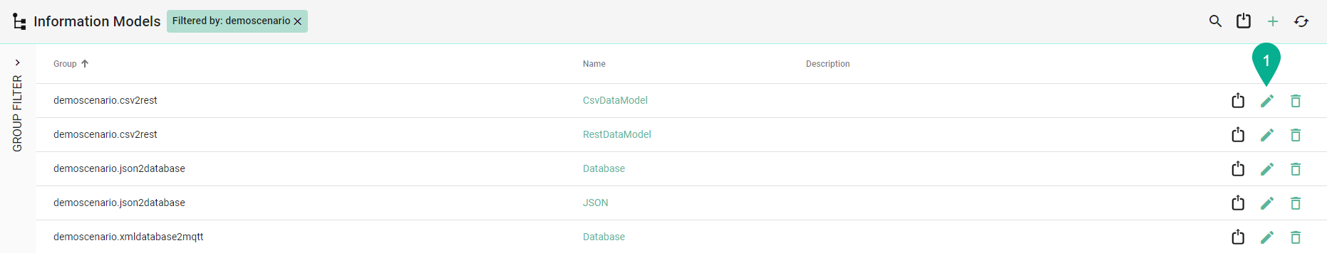 - In the table view, next to each component on the right, the following operations are available: