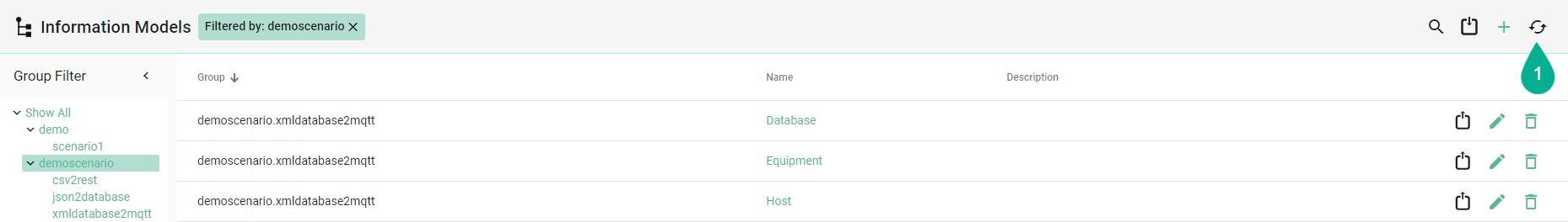 Selecting the Reload button (1) in the upper right corner refreshes the components from the repository.