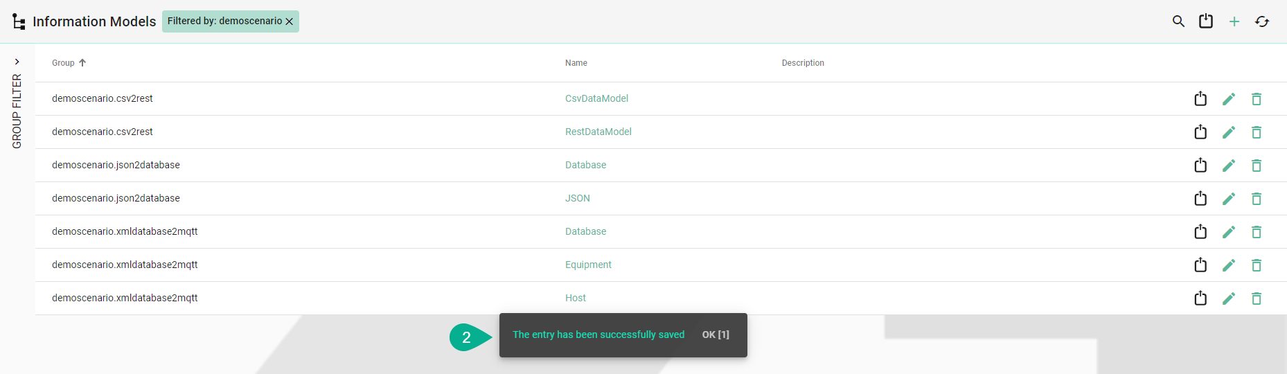 A confirmation message appears (2), the edit mode is then closed.
