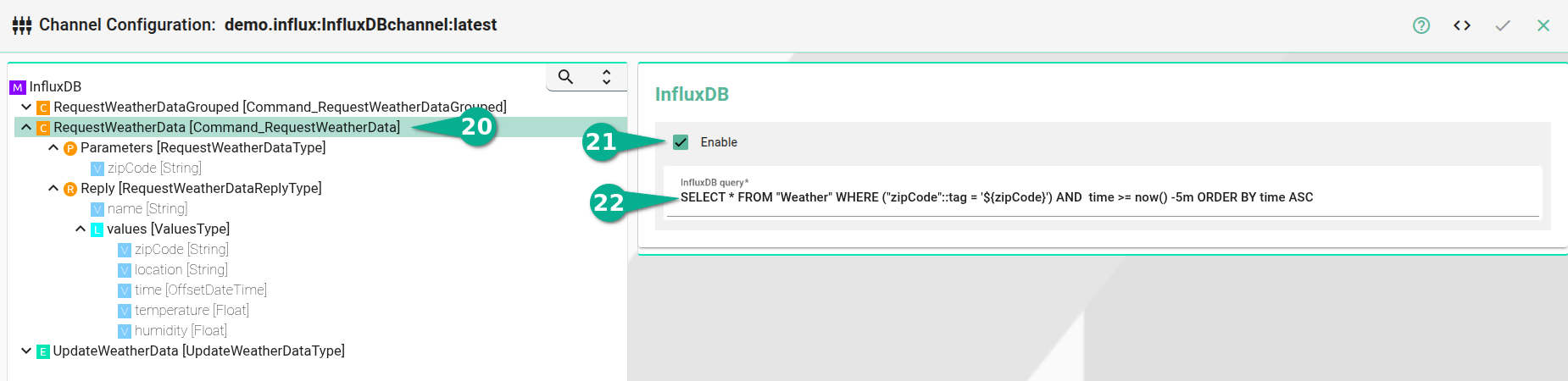 Reading from InfluxDB is done using Command