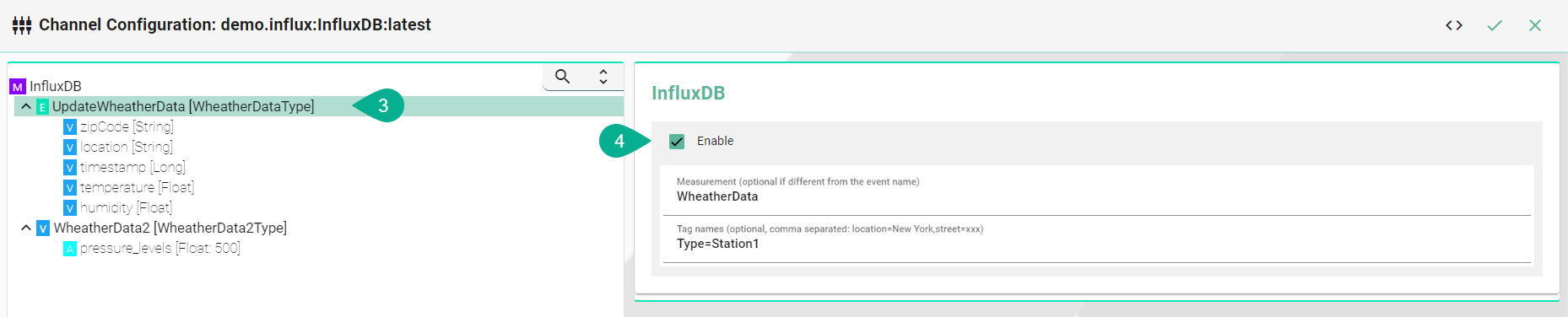 (Optional) Enter a Field name if the event node name differs from the actual name in InfluxDB.