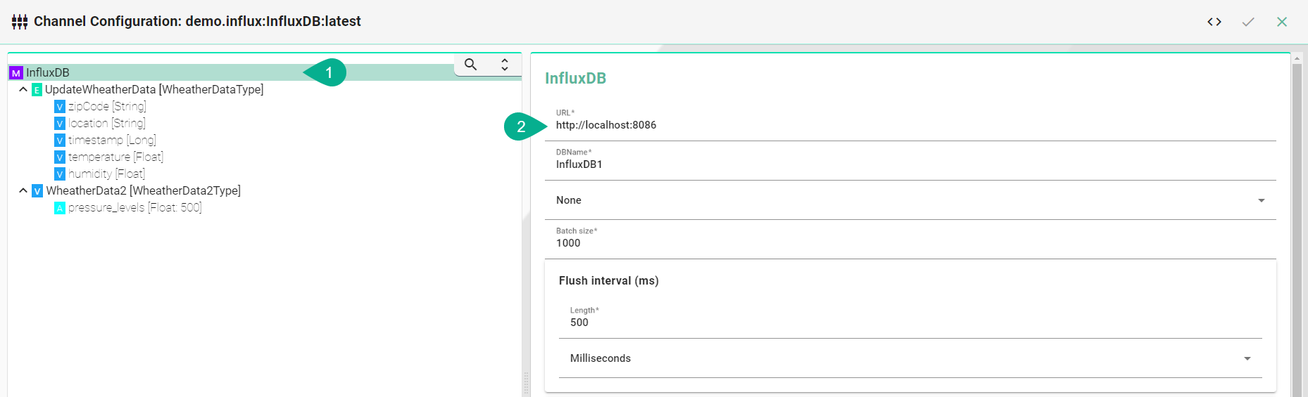 Enter the Batch size - writes data in batches to minimize network overhead when writing data to InfluxDB