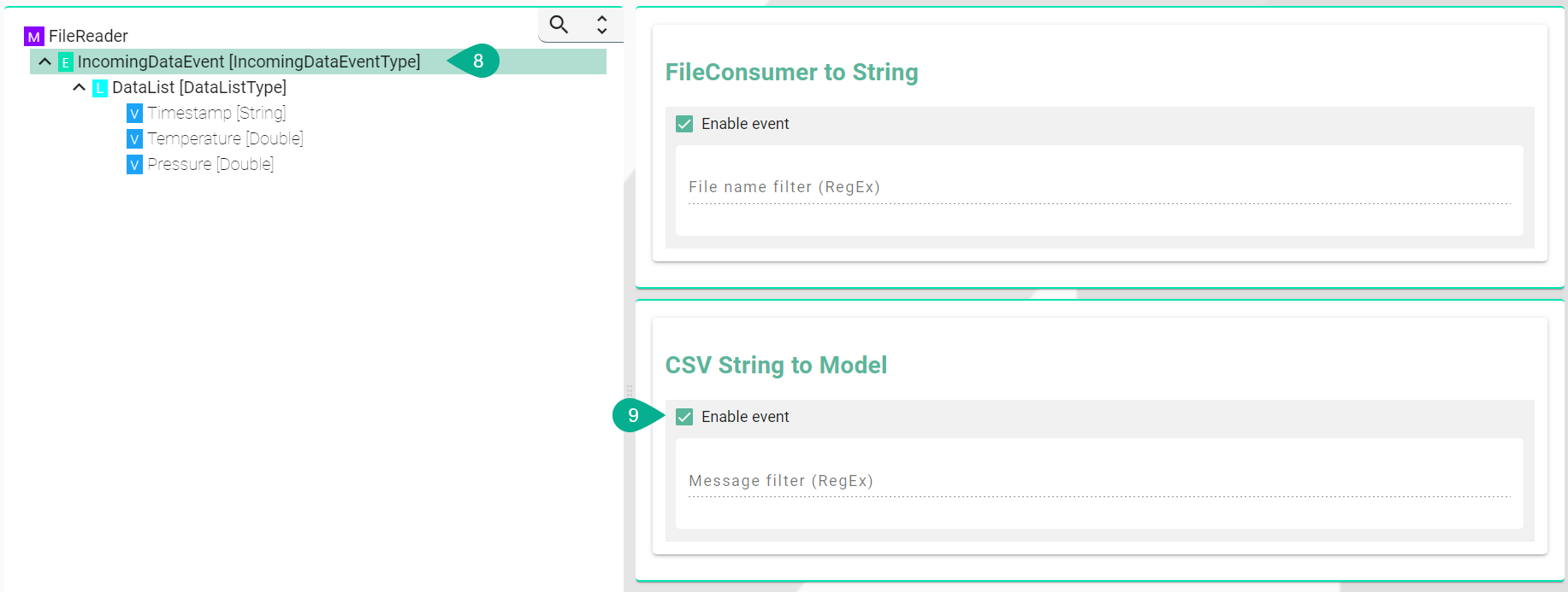 Check the Enable Event checkbox if you want to set a filter using a regular expression.