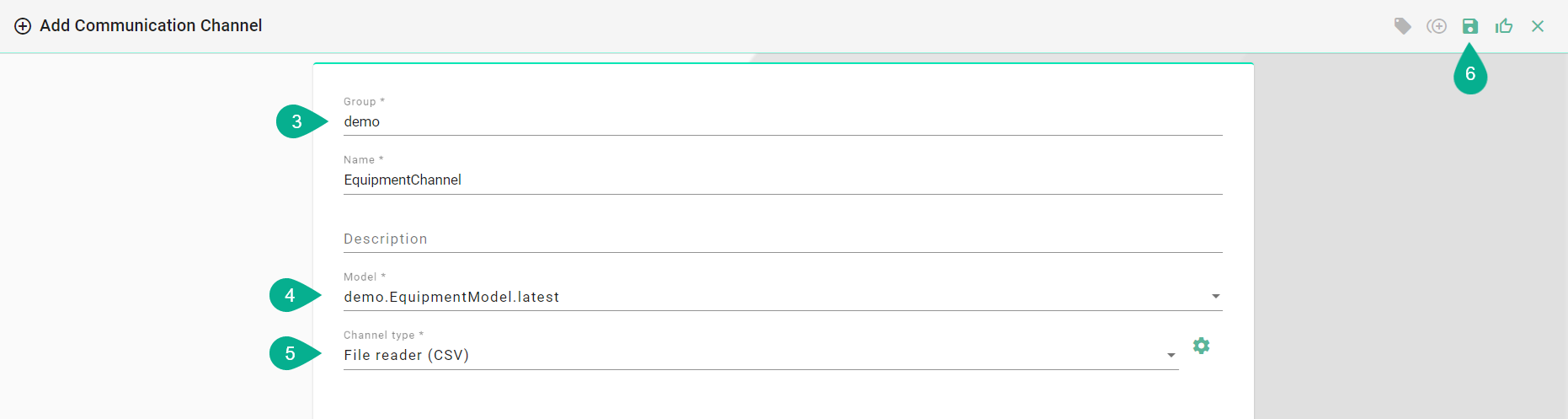 Click the "Save" button (6) to save the Channel