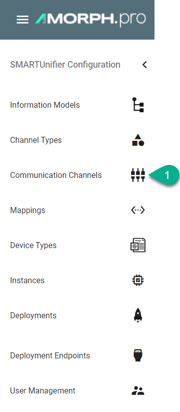 There are several Channel types available with SMARTUNIFIER. A listing of Communication Channel types can be found at https://amorph.pro/getsmartertopic/smart-connectivity/. If a specific Communicating Channel type is not available in this product version, please contact Amorph Systems. In many cases the provision of a specific Communication Channel type can be provided as extension to the standard product.
