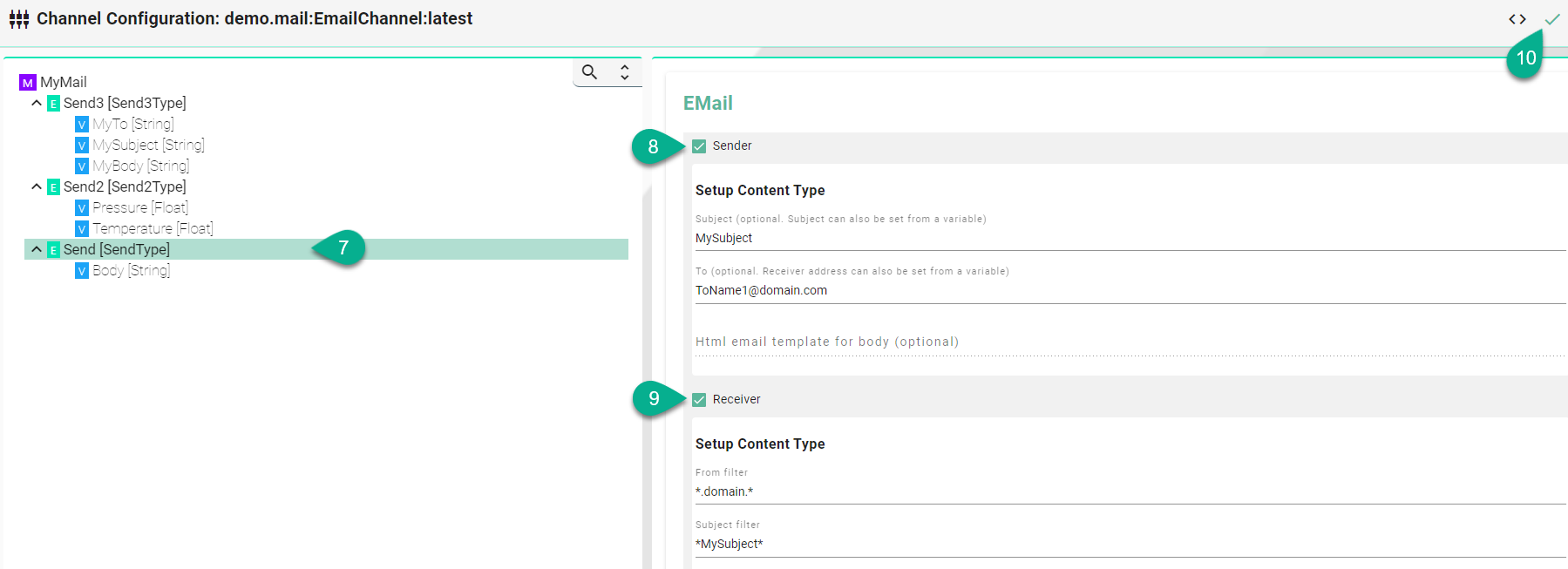 If the variable is using a key name (To, From, Subject, Body) no additional configuration is needed