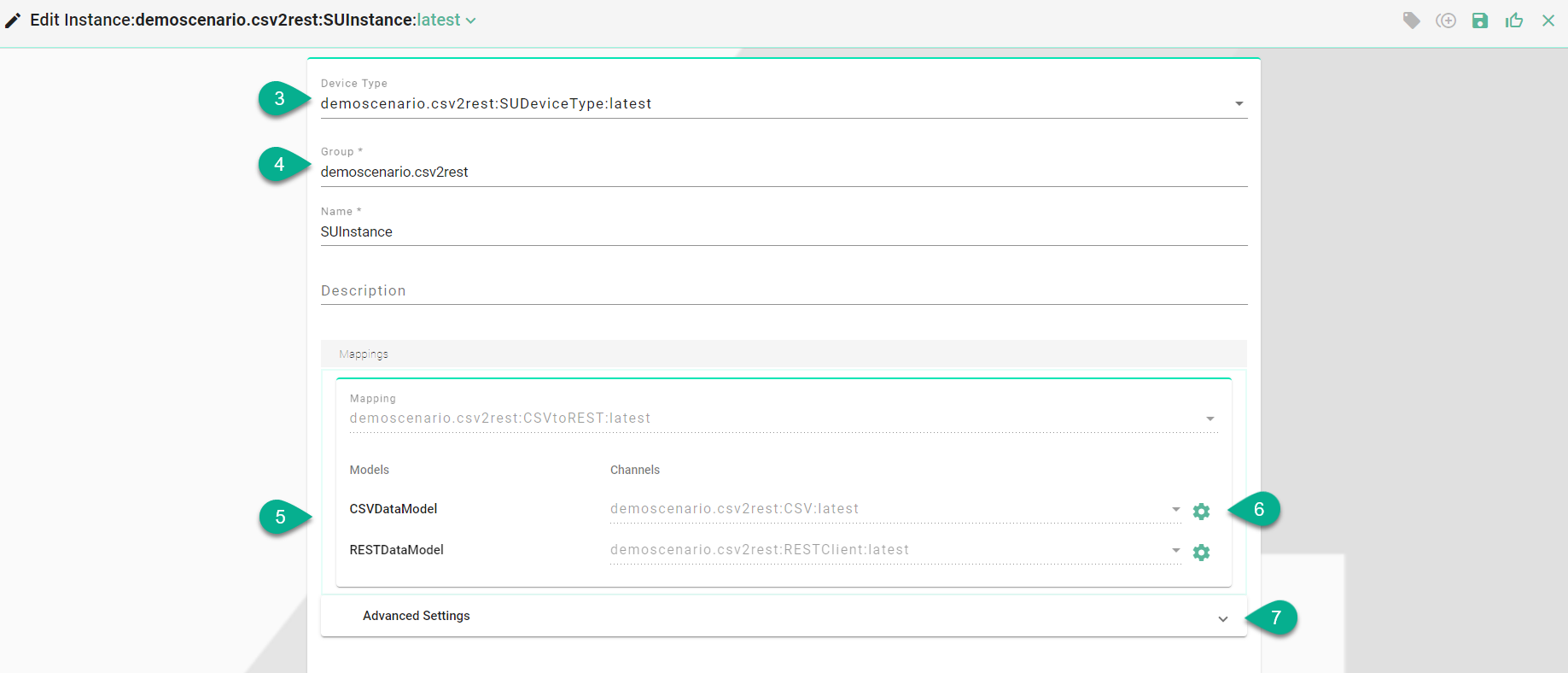 The instance details are automatically populated based on the Device Type (4), but you can still modify the Group, Name, Version, and Description fields as needed