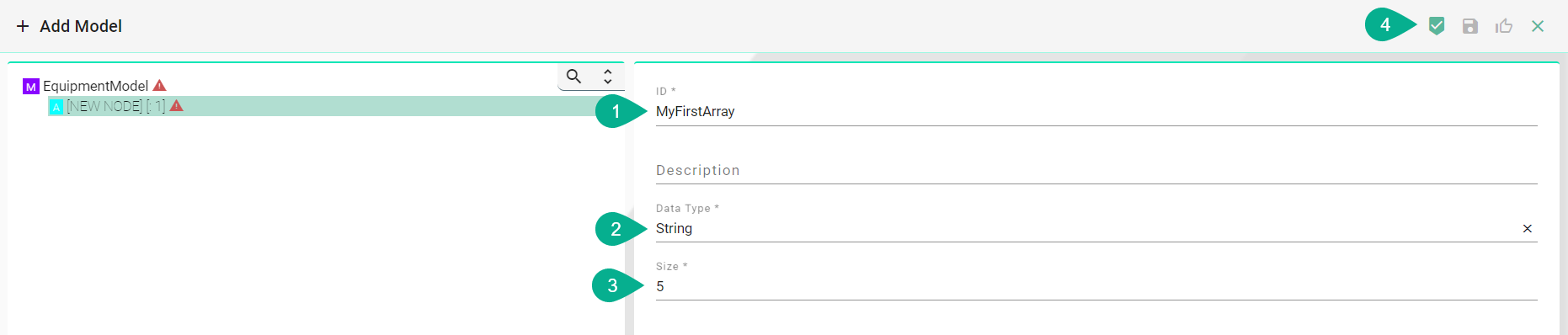 Arrays are designed to store a fixed number of elements, all of which share the same data type. The array's size needs to be specified in the Information Model's configuration. When defined as a Custom Data Type, arrays enable the creation of structured elements including Variables, Arrays, Lists, and Properties.